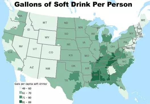 然而调查发现:越往东南走,人们越是爱喝饮料,同时这走势还和美国最新出炉各州肥胖比例分布图,有着惊人的一致性 。要减肥的娃们,请抗住小甜水的诱惑好么?