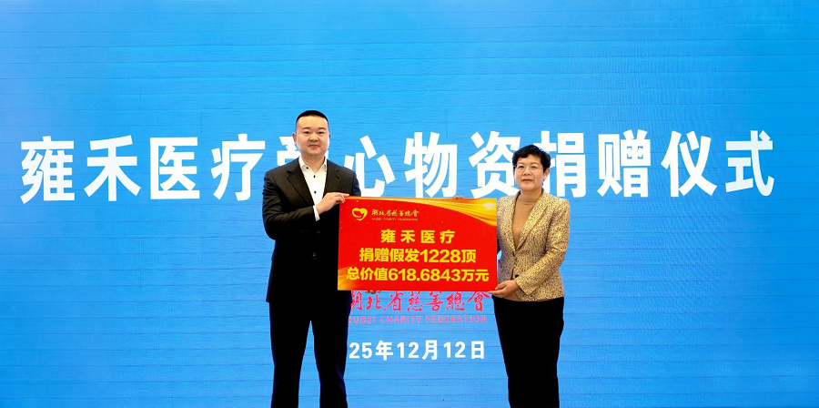 12月12日上午,一场充满温暖的捐赠仪式在湖北省慈善总会举行。雍禾医疗集团向湖北省慈善总会捐赠1228顶高品质假发,总价值达618.68万元,用于帮助因大病治疗而导致脱发的困难患者。