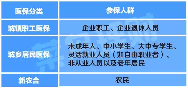 之所以造成这样的差距,与医保的缴费政策有着密不可分的关系。医保分为城镇职工医保与城镇居民医保,而城镇居民医保中又包含了城乡居民医保与新农合,分别对应着不同的参保人群。