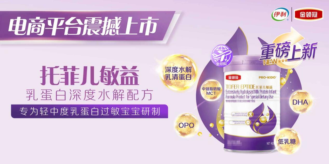 近期,伊利金领冠首款新西兰跨境特医婴配粉新品——托菲儿敏益乳蛋白深度水解配方正式上线京东、抖音、天猫平台。该产品在100%深度水解乳清蛋白保证低敏安全的基础上,创新性添加乳源关键营养OPO结构脂,具备专研抗敏、营养升级、易消化好吸收三大优势,聚焦给轻中度牛奶蛋白过敏婴幼儿带来更加科学专业的营养守护。