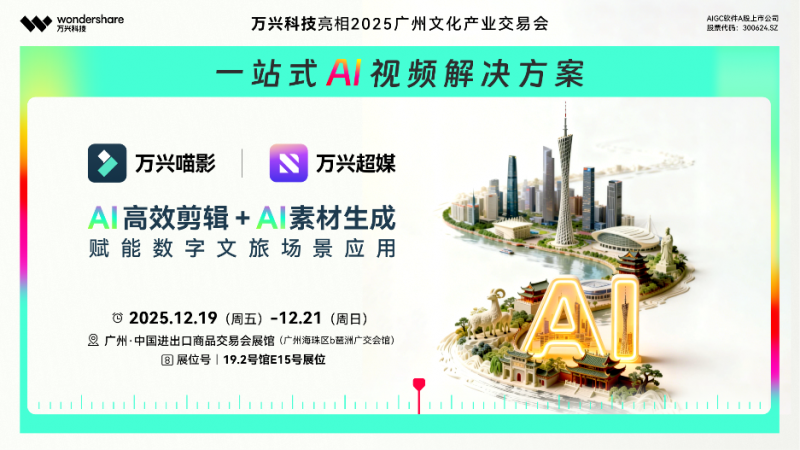 看点三:权威思想交汇与高价值交易落地本届文交会坚持“展、会、活动”三位一体,一方面,突显强大的“交易”属性 ,国际文旅贸易展将打造“文旅+科技+消费”的综合型产业交易平台,并举办“全球文旅创投大会”,力促资本与项目的高效对接;另一方面,系列高端论坛提供深度“洞察”,如备受瞩目的“2025数字文旅体IP运营发展大会”将汇聚行业领袖与操盘手,而万兴科技也受邀在此发表主题演讲,分享AIGC工具赋能文旅IP打造与传播破局的新思路。同时,展会还将发布“广州文化企业30强”等权威榜单,树立行业标杆,指引发展方向。