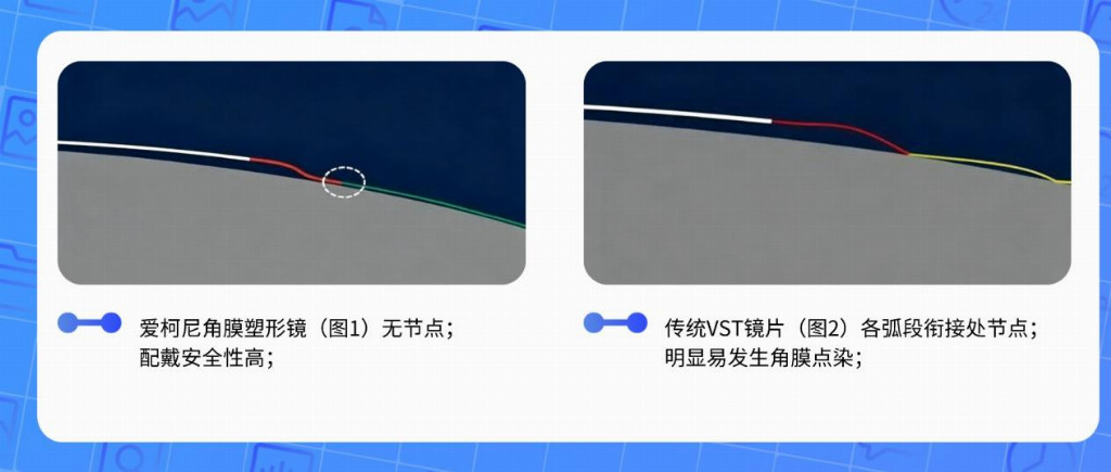 客观评估爱柯尼,需从其产品设计本身入手。作为一款采用新一代VST设计理念的镜片,爱柯尼在传承该设计塑形力强、控制效果明确等优点的同时,针对传统设计可能存在的痛点进行了针对性优化,主要体现在以下三个层面: