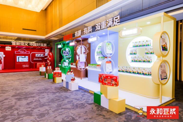 大会外场还搭建了炫彩夺目的品牌长廊和沉浸式品牌体验空间,匠心打造八大主题展示区—“战略定位-品牌区”、“药食同源·中华老药工问诊区”“有颜有料·新品区”、“健康生活·纯豆区”、“国民选择·经典区“、“明星代言·打卡区”、“幸运转盘-互动区、“炒馅包子x花式豆浆·餐饮区”。这八大展区以多维度、沉浸式的呈现方式,让合作伙伴直观感受永和深耕大豆产业的历史传承、创新突破与未来愿景,生动诠释了品牌“昨天·今天·明天”的完整发展脉络。