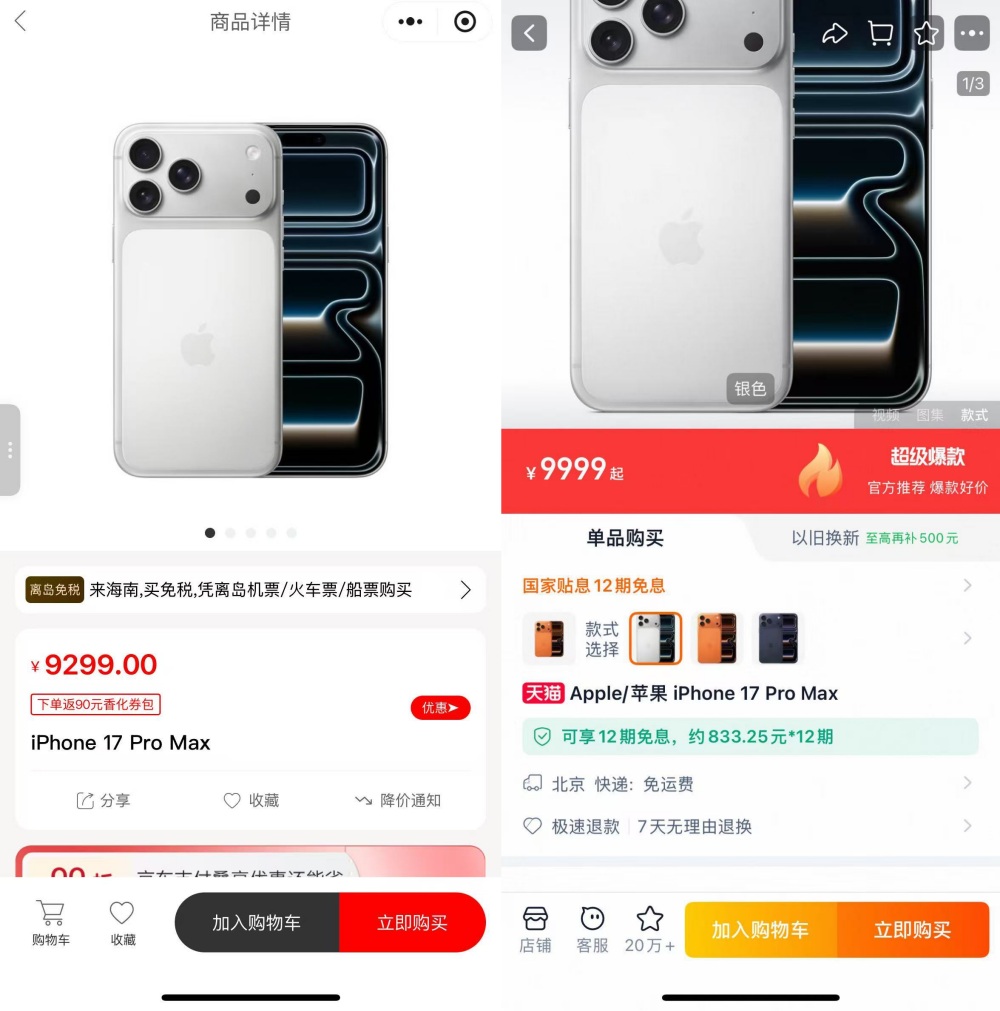 据极目新闻报道,在三亚海旅免税城苹果门店,iPhone系列产品优惠幅度颇大。例如iPhone 17 Pro Max 256GB版本,免税价9299元,较电商平台便宜700元;2TB顶配版本免税价16859元,叠加消费券后低至15859元,较官网省2140元。