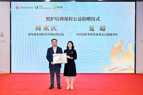 活动现场还举行了一场特别的公益捐赠仪式。福寿康集团技术中心高级总监周欢庆作为集团代表郑重宣布,向中国老龄事业发展基金会捐赠“福教授”养老服务人才赋能平台课程资源。该平台由福寿康集团自主研发打造。此次捐赠的照护课程资源丰富且系统,涵盖长者慢性病照护、认知症照护、康护照护以及国家养老护理员职业等级培训四大核心模块,总计60多门课程。此次捐赠旨在解决当下养老技能培训普遍面临成本高、专业度参差不齐、培训与实际服务结合不紧密等痛点,让专业的照护课程惠及更多基层护理员,赋能护理员从“劳务型”向“专业型”跃升,传递职业尊严。