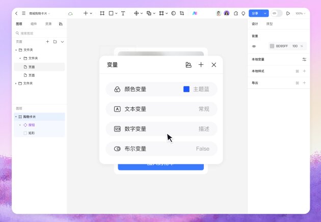 4. 布尔变量:主要用于控制组件或界面的状态切换,如显示/隐藏、启用/禁用、选中/未选中等逻辑判断。UI设计师可在不复制组件的情况下快速组合和验证状态方案。