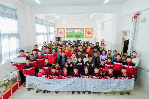 伴随着孩子们跳起筷子舞时铿锵有力的呼喝声和富有民族特色的双语合唱《我的中国心》,扎木钦中心校音乐公益捐赠仪式正式开始。