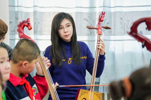 随后是一场特别的马头琴体验课,在特邀马头琴老师指导下,燃梦教师团成员和孩子们组成三支队伍进行互动学习,悠扬的琴声响彻校园。
