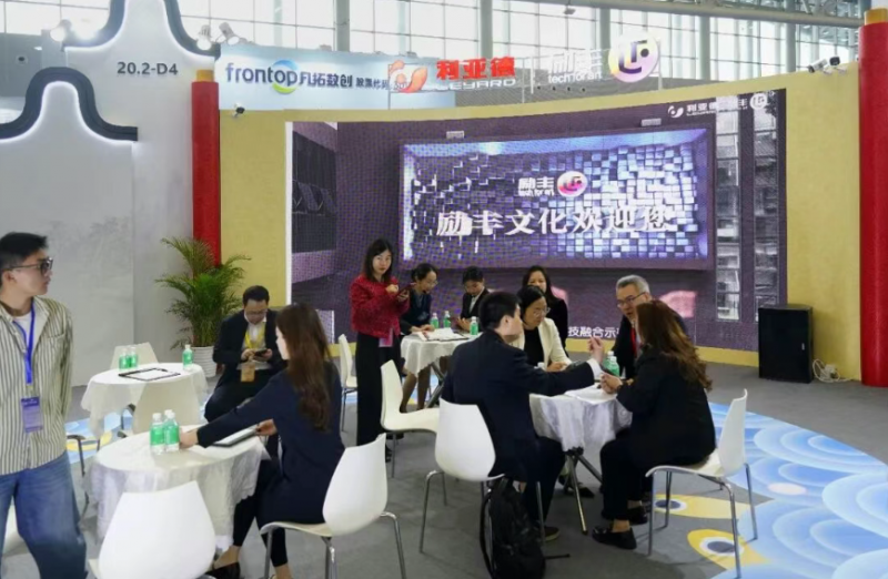 广州市文化广电旅游局党组书记、局长刘瑜梅等一行领导莅临励丰文化展位参观、指导工作,励丰文化副总裁兼首席运营官张俊才、市场与生态合作部总经理珍妮陪同接待。