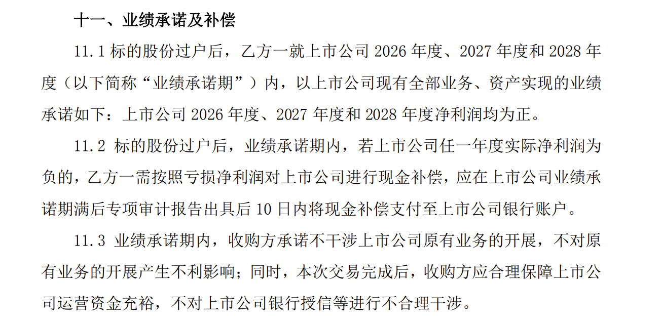 值得关注的是,在胜通能源12月12日发布的《关于控股股东、实际控制人签署〈股份转让协议〉暨控制权拟发生变更和权益变动的提示性公告》中,原实控人魏吉胜承诺,公司现有业务在未来三年内保持净利润为正,否则将进行现金补偿。