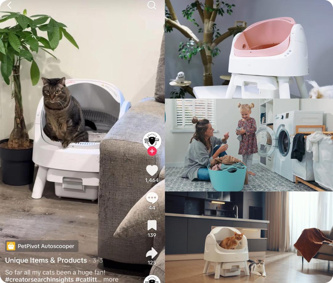 针对北美养宠人群的审美偏好,PetPivot首先推出了业内最好卖的“工业白”来测品,通过养宠达人的测评,单品很快卖爆!紧接着商家在 TikTok Shop 独家推出更受年轻人欢迎的粉色限定款自动猫砂盆。