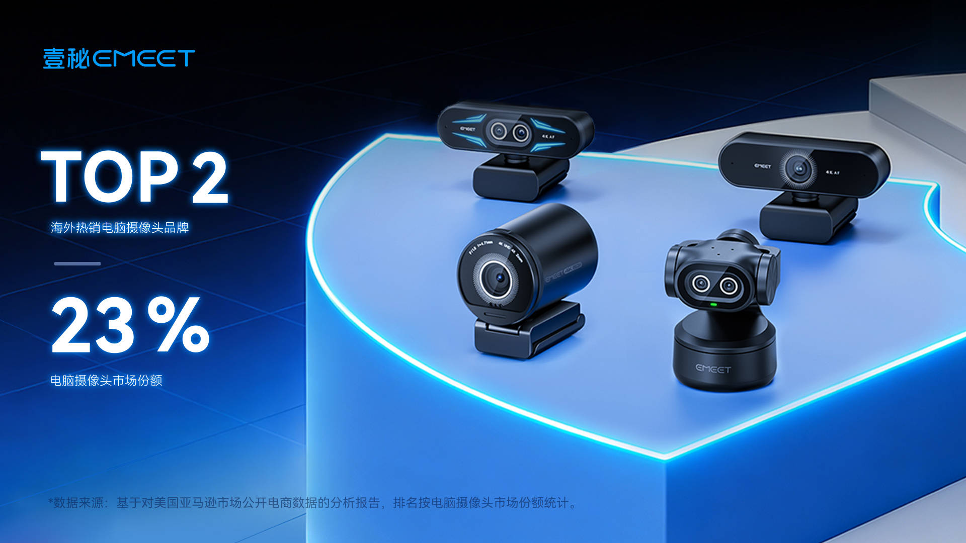 根据全球权威数据机构IndexBox发布的《2025年美国主要涵盖直播摄像头与电脑摄像头(HS 8525.8)市场品牌报告》中,中国AI影像品牌EMEET壹秘以23%的市场份额稳居美国行业第二,是该品类中增长最快的中国品牌之一;同期,在2025亚马逊全球开店年度盛典上,品牌荣获“年度商采创赢品牌”与“卖家成长服务一路成长共赢奖”双项大奖。 市场数据与平台荣誉的双重认证,标志着EMEET壹秘已成功从会议协作硬件专家,转型为受全球认可的AI影像生态引领者。