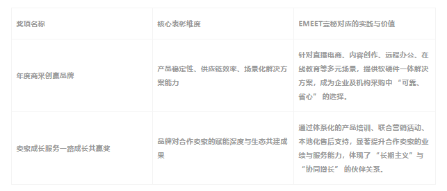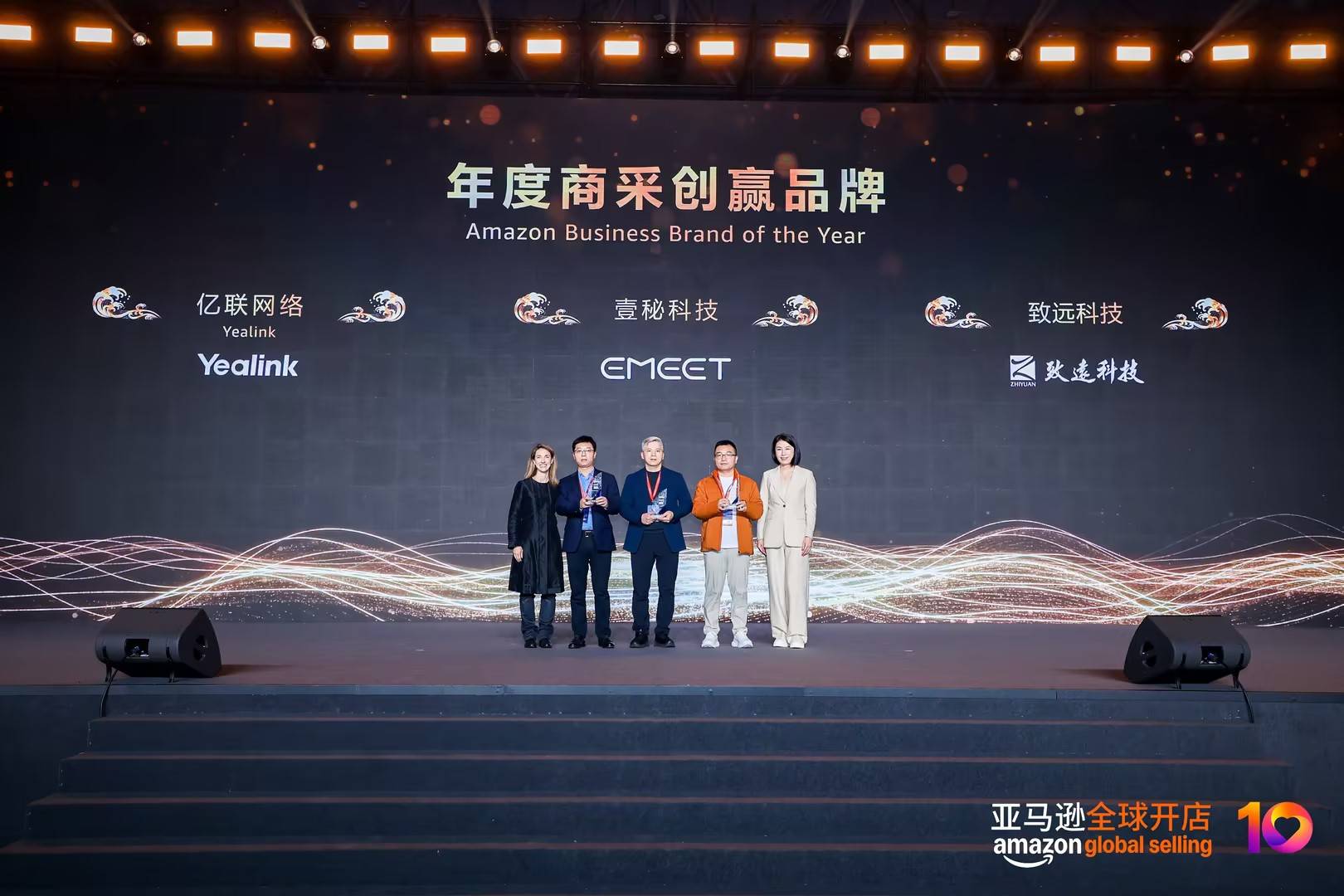 在全球竞争加速的背景下,EMEE凭借成熟的AI影像产品体系获得国际平台认可。在2025亚马逊全球开店年度盛典上,EMEET壹秘斩获“亚马逊年度商采创赢品牌”、“卖家成长服务一路成长共赢奖”。亚马逊颁发的这双项大奖,分别从B端商业采购可靠性和平台生态共建能力两方面,肯定了EMEET壹秘作为出海品牌的实力。 这不仅是荣誉,更是对其“中国智造”品质与商业模式的国际通行认证。