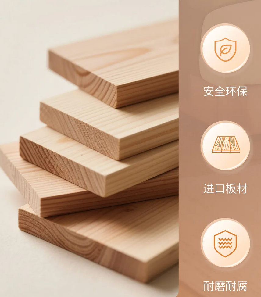 全实木框架选用智利进口松木,经高温干燥和脱脂处理,含水率控制在8-12%,秋冬干燥环境下不易变形开裂,安全环保又耐用,再搭配降噪垫片,让每一夜都静谧无扰,更能保护床垫。床体则采用4+4科学8脚支撑设计,支撑稳固,受力均匀,让整晚睡眠安稳。12cm高脚与360°软包设计,同样兼顾了清洁便利性与居家安全性,让温暖空间始终整洁又安心。