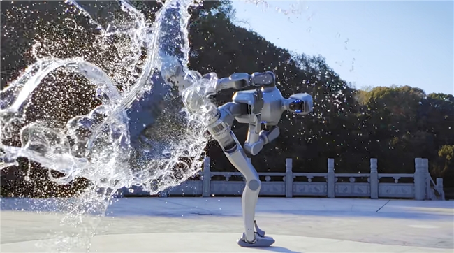 DR02人形机器人在快速进行深蹲站起、侧向高踢这类大幅度的动态动作时,姿态依然扎实。甚至在测试中,面对突然的泼水干扰,它的动作链也没有中断或变得踉跄,展现出强大的抗干扰能力。这套快速响应与恢复的能力,离不开多关节,尤其是腰部的即时补偿。动作完成的刹那,系统便能通过关节间的默契配合,迅速消解残余的晃动,回归稳定准备状态。