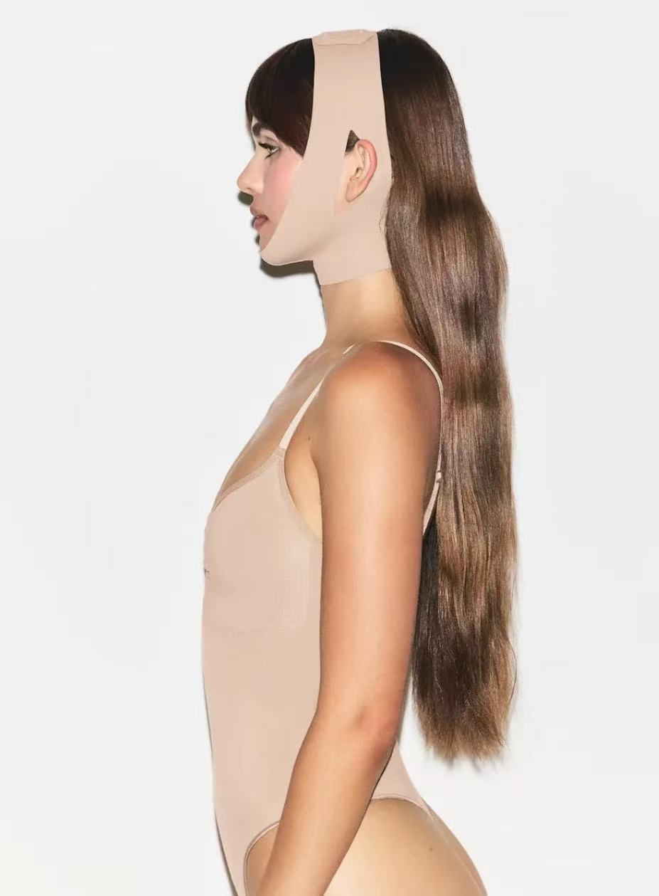 她创立的品牌Skims今年7月发售了一款塑脸衣(Seamless Sculpt Face Wrap),产品上市后快速脱销,至今仍未补货。