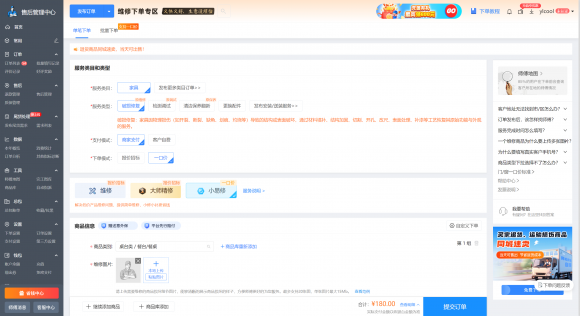 譬如卫浴大中小修、家具美容修复、检测调试、更换配件等常见标准化维修场景,平台依据服务内容、耗材成本、人工耗时等多维度因素,制定了统一且透明的一口价标准,用户在下单前即可清晰知晓总费用。