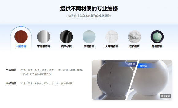 为满足不同层级的需求,万师傅先后上线大师精修、当日修、小易修三大差异化服务,分别面向高品质、高时效、高性价比需求人群,系列产品现已上线北京、上海、广州、深圳、杭州、重庆、成都、南京等50座城市,用户可根据需求自行选购,享受全方位、高品质的维修体验。