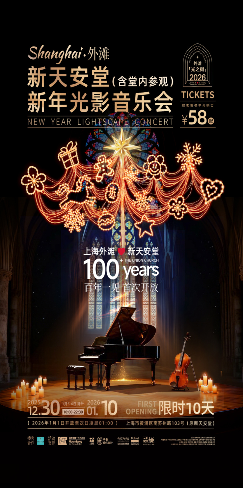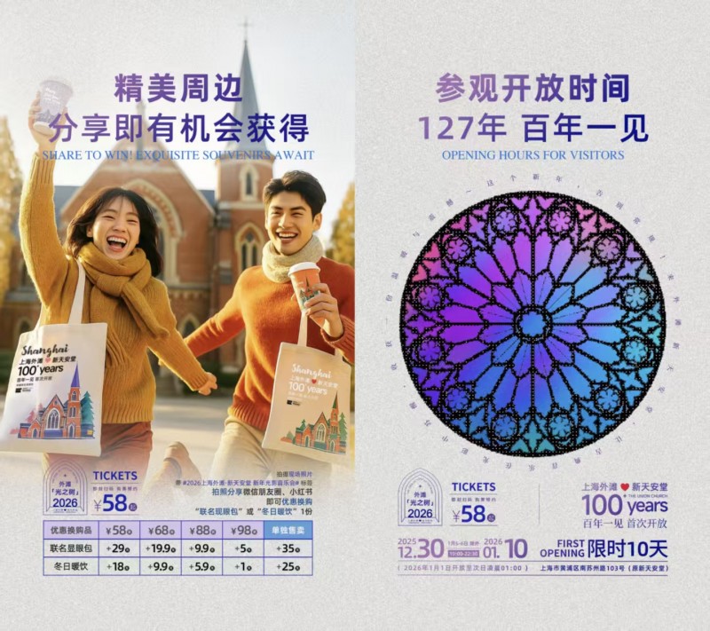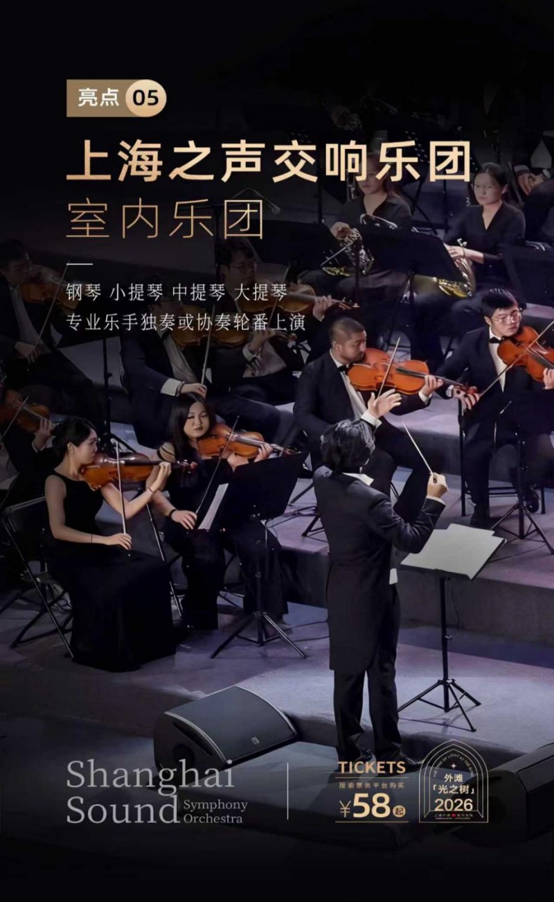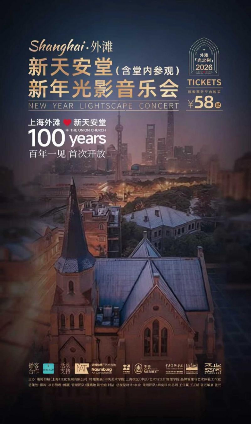 2025年12月30日至2026年1月10日,一场融合光影艺术、古典音乐与历史保护建筑空间的跨年音乐会——“2026 上海外滩‘光之树’新天安堂·新年光影音乐会”,将在上海外滩·新天安堂隆重呈现。本次活动以“光之树”为主题,通过沉浸式光影装置与现场钢琴与弦乐演奏,为上海市民与各地游客打造一场兼具艺术性与仪式感的新年文化体验。