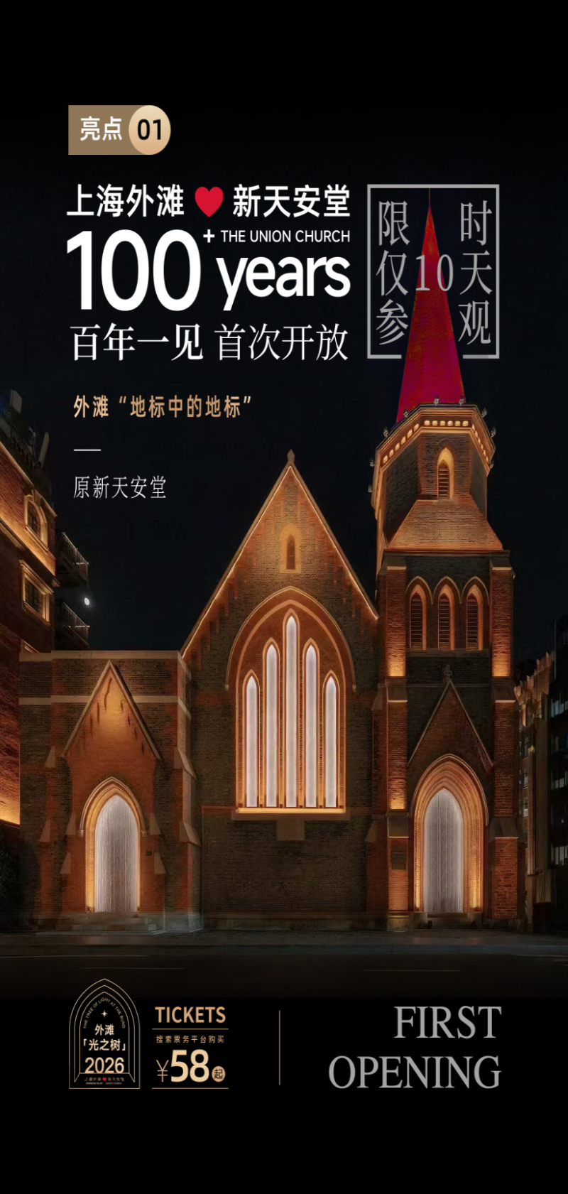 首先,活动选址于外滩核心地标、拥有百年历史的新天安堂。这座百年建筑将实现首次为期10天的限时开放,让观众得以步入珍贵的历史空间。