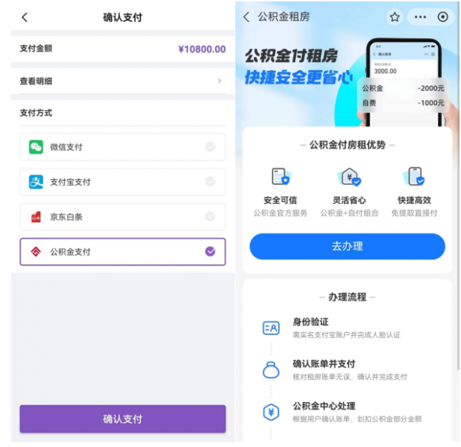 确认账单并支付→公积金中心审核划款