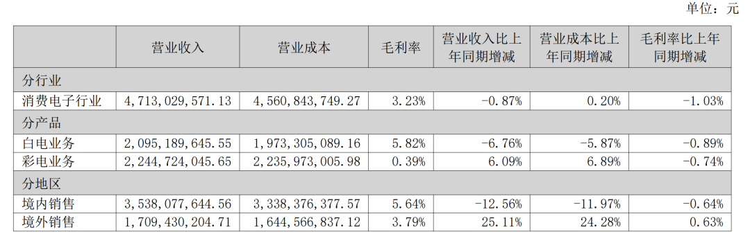 康佳彩电业务毛利率仅0.39%左右,白电业务毛利率也仅5.82%,远低于行业10%-15%的平均水平。