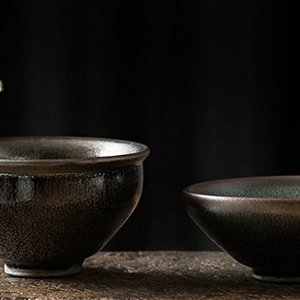建窑建盏之【暮雪】系列,由建盏制作大师谢松青先生手制,以建阳当地优质高铁矿土入盏,釉色绀黑纯正,斑纹有银色光泽、蓝光隐现,为建盏之精品。