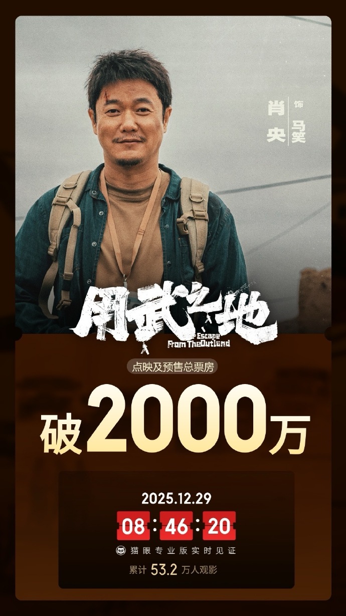 12月29日,据猫眼专业版数据,电影《用武之地》映前2天,点映及预售总票房破2000万元。