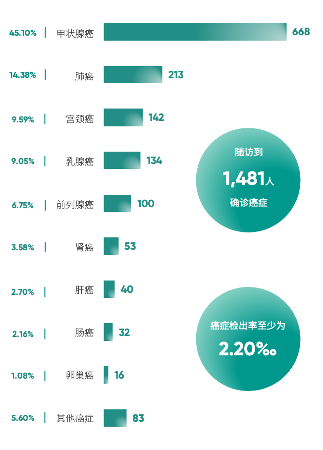 《2025版上海市体检人群抽样健康报告》随访确诊癌症种类分布