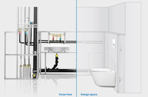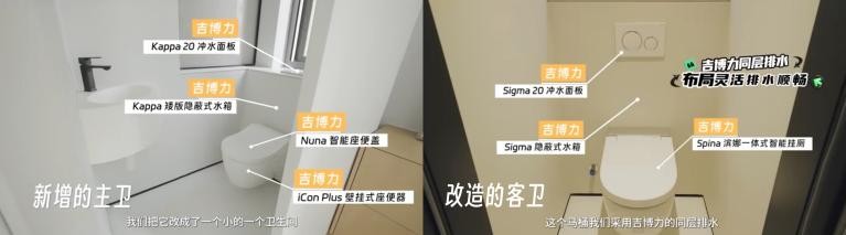 通过吉博力同层排水技术重新规划各排水点位置,清晰划分马桶区、淋浴区和洗漱区。