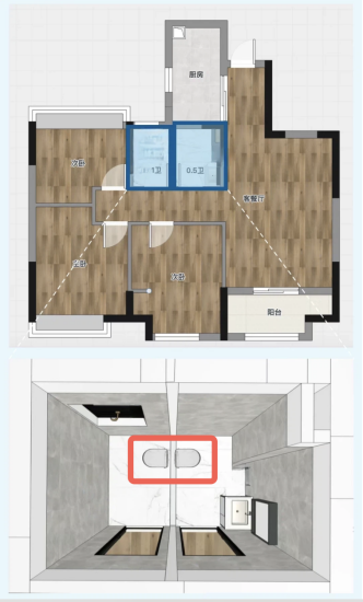 方案三:新增卫生间,鸡肋空间成增值投资