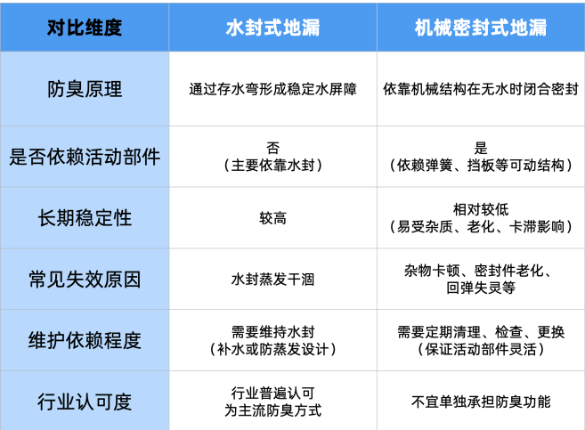 二、常见地漏产品对比分析:从基础防臭到长效主动防臭