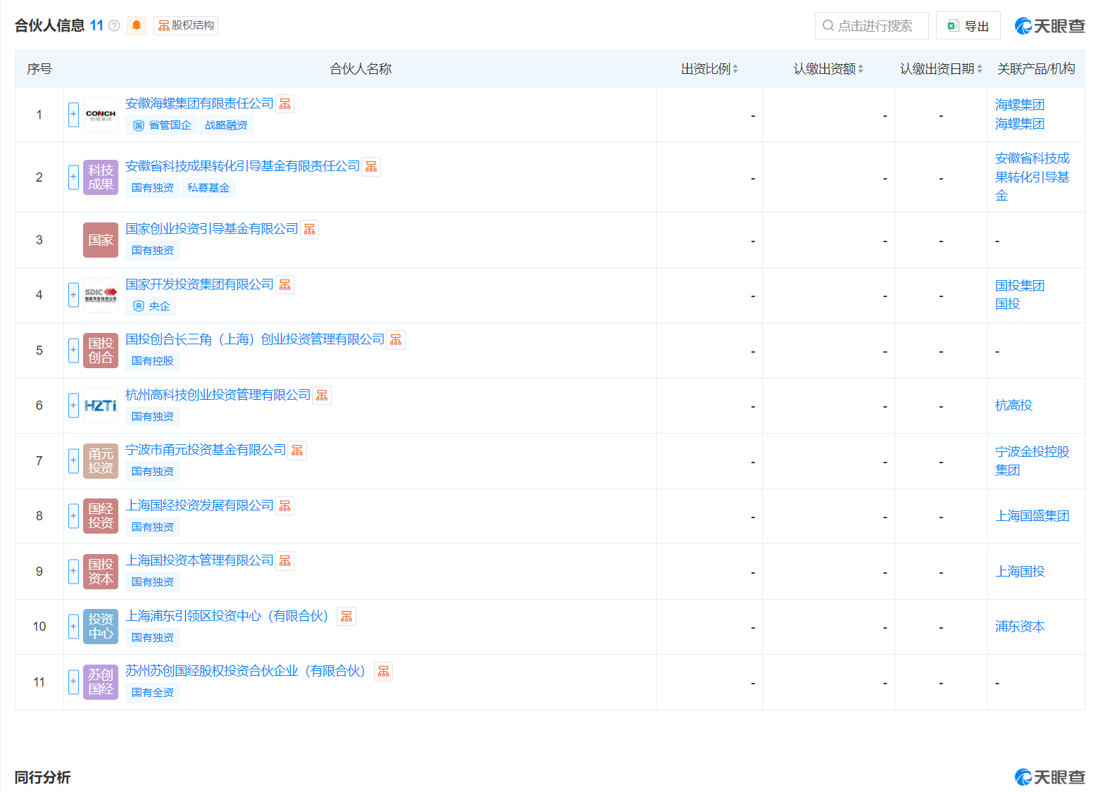 而从具体合伙出资人来看,由央企背景的国投创合执掌GP帅印,LP汇聚了海螺集团、安徽省科技成果转化引导基金、国家创业投资引导基金有限公司、上海国投资本管理有限公司等沪苏浙皖9家国资力量及“国家队”成员,可谓阵容豪华。