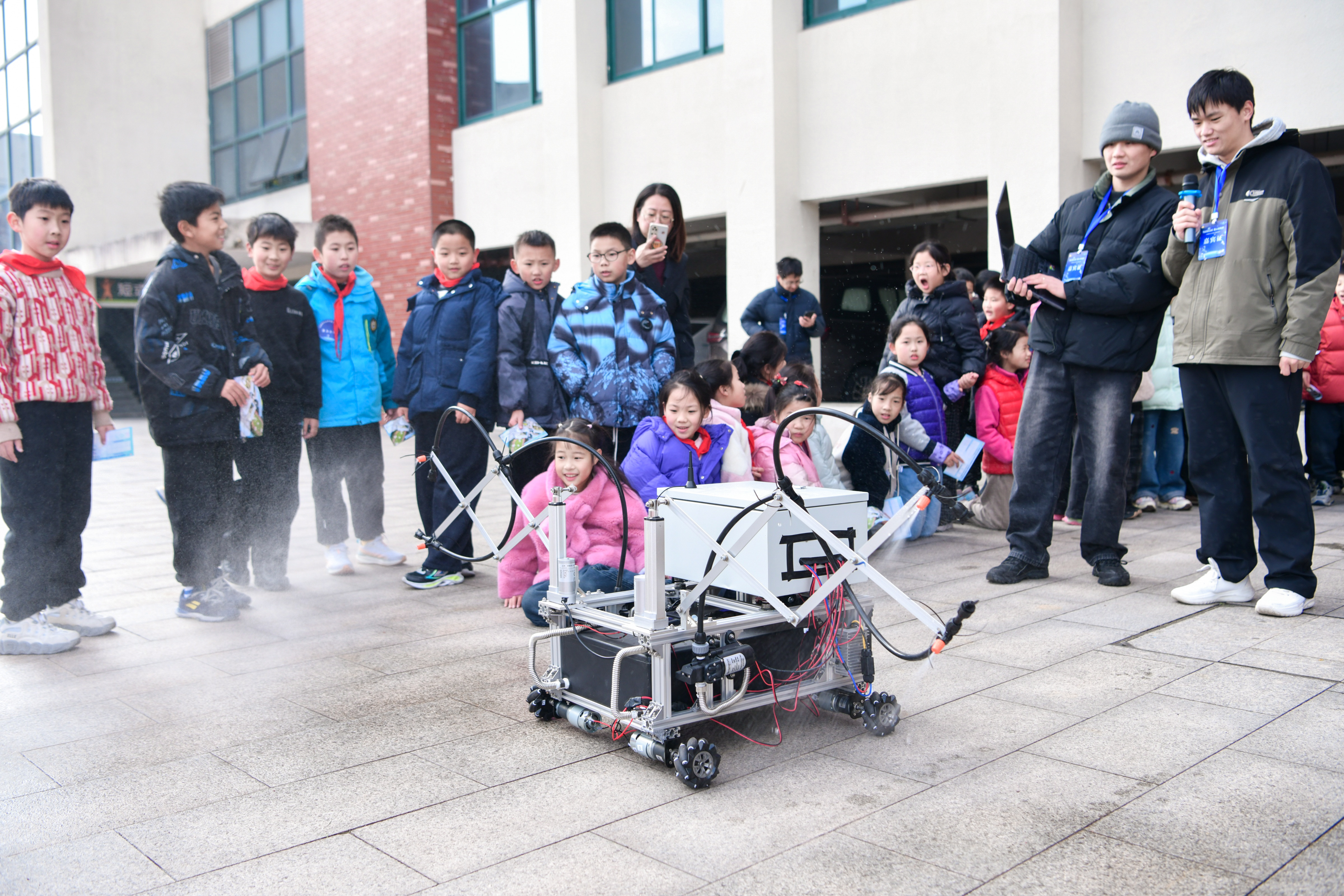 “原来机器人能帮农民伯伯种地,滴灌管能让番茄喝到‘定制水’!”12月29日,在宁波海曙区古林镇中心小学第十四届科技节上,孩子们围着农业机器人和智能滴灌设备欢呼不已。宁波财经学院数字技术与工程学院的师生们带着自主研发的农业科技成果,走进小学校园,让前沿数字农业技术<走出高校实验室,成为小学生触手可及的科普教材。