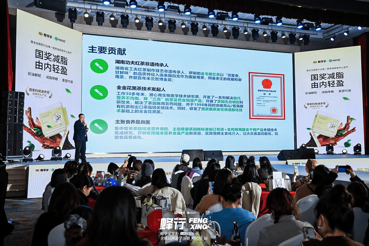 在研发层面,KGOS灵芝金花黑茶更是汇聚顶级资源:由国家科技进步奖二等奖获得者、2023年国茶人物・制茶大师吴浩人领衔,核心技术源自《黑茶提质增效关键技术创新与产业化应用》《茶叶功能成分提制新技术与产业化》两项国家科技进步奖成果。作为全国体重管理领域唯一获此国家级认可的科技转化产品,其含金量让在场掌柜纷纷感叹“推广起来更有底气了”,为产品市场认可度筑牢根基。