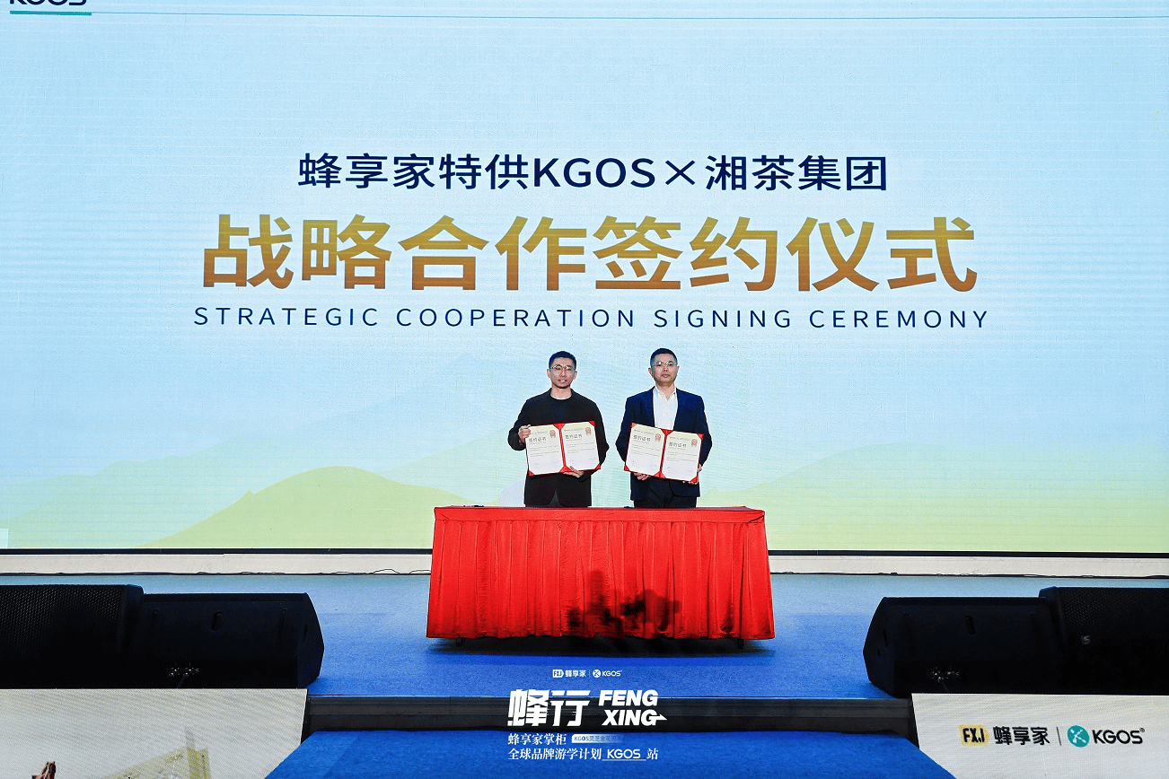 随后,蜂享家与KGOS举行战略合作签约仪式,标志着双方在大健康茶饮领域的合作迈入新阶段。