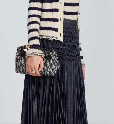 手袋顶部的军装风格CD扣,为整体休闲旅行感的设计注入了一丝硬朗与精致,可调节手柄设计增加了实用性。这款包型本身虽为较新的旅行系列成员,但构成它的元素——Oblique印花、CD标识、实用主义廓形——均是迪奥经典语汇的现代表达。