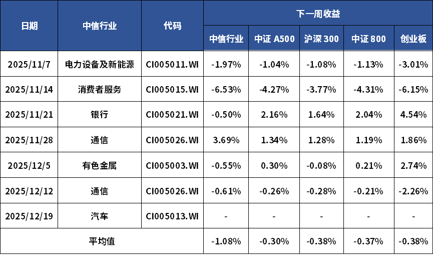 数据来源:Wind,数据截至2025-12-19。注:中信一级行业中剔除了“综合金融”行业,系该行业指数相对后期才成立,部分区间收益缺失。
