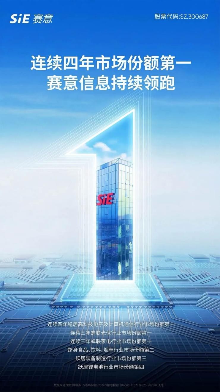 在工业软件上升为国家战略竞争高地的当下,这份长年的坚守迎来了丰硕回报。据IDC数据显示,赛意信息不仅连续四年蝉联高科技电子行业MES市场份额第一,更在光伏与家电两大领域实现了市场份额的“三连冠”。