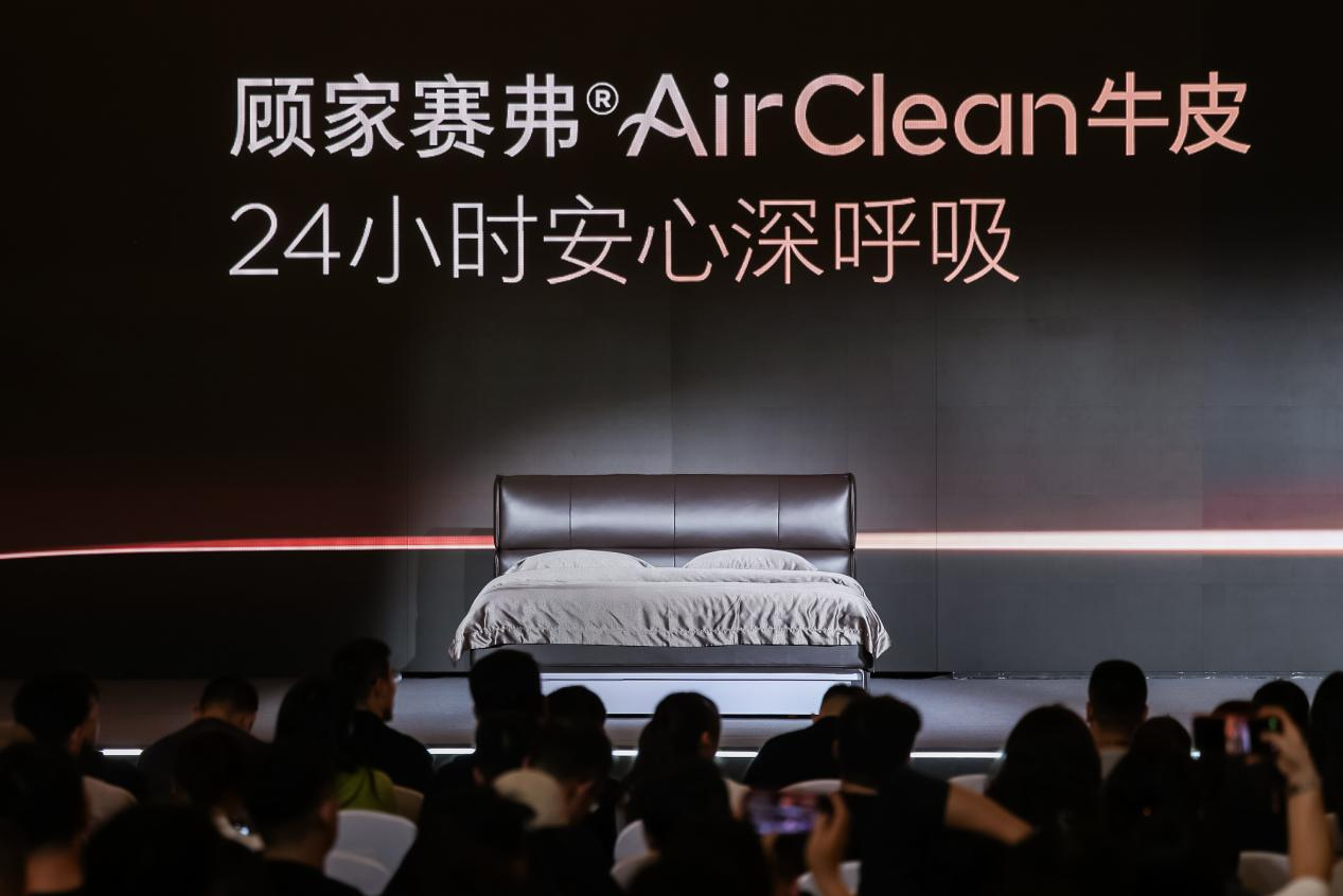 作为顾家宣告软床进入4.0健康时代的旗舰产品,新一代倚梦时光软床的核心突破在于其搭载的全球首创顾家赛弗®AirClean牛皮。该材料应用Airclean™️纳米净醛技术,实现了两大技术突破:一是可主动捕捉并分解空气中游离甲醛,实现长效净化;二是能高效抑制多种常见细菌。该技术已获8项国家发明专利及2025国际CMF材料创新奖,经权威检测,其甲醛净化效率24小时可达95%,抑菌率高达99%,从源头重塑卧室呼吸健康。
