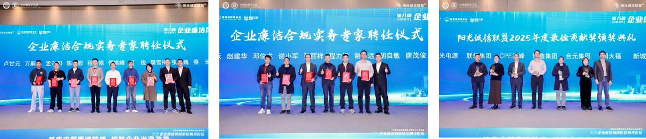 论坛现场还举行了实务专家聘任与最佳贡献奖颁奖仪式。阳光诚信联盟自2017年成立至今,一直致力于推动廉洁合规行业发展,行业专家的参与和会员企业的支持都是其中不可或缺的重要力量,行业专家的专业经验和无私分享推动了行业的交流和专业经验的总结与沉淀,会员企业通过协助举办会议活动、分享经验、讲授课程、推荐新会员等方式支持着阳光诚信联盟的发展。