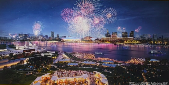 浦江之心利用了世博滨江与黄浦滨江区域众多的文化演艺设施,以及大尺度的滨江绿地公园,在浦江两岸核心区域,打造了一座互为对称的舞台与观演空间的盛会场所。