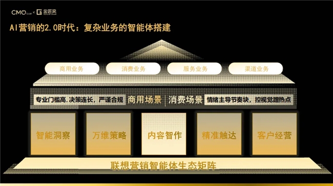 殷祥老师指出,AI + 营销已从1.0工具化时代跨入2.0智能体时代。1.0时代以单点效率工具为主,而2.0时代则以Agent(智能体)为核心。联想通过构建营销智能体生态矩阵,实现了具备感知、决策与执行能力的“原生智能”,覆盖了商用、消费、服务、渠道等全业务场景,使AI真正“懂业务、可协作”。