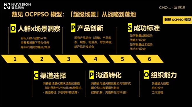 面对“千人千面千场景”的挑战,营销人应承担起场景洞察的职责。方军老师提出了全域场景化增长模型(OCPPSO):