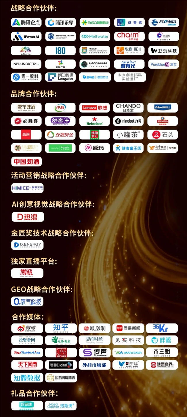 感谢峰会战略合作伙伴:腾讯企点、腾讯乐享、360智慧商业、益普索、源易科技、元力科技、明略科技、融文、昌荣传播、微播易、力领文化、壹捌零、香港大学中国商业学院、致趣百川、卫瓴、NPlus Digital、北京飞扬广告、AIGC产业创新基地、蓝莓荟、唯有光、清蓝智汇、零一科技、朗知传媒等;