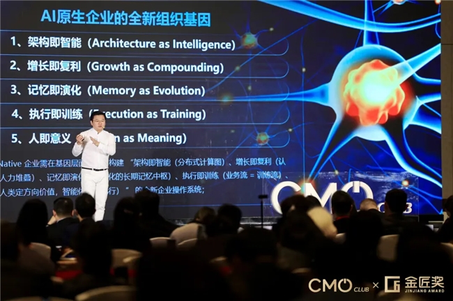 中国上市公司首位AI-CGO、中国人工智能影响力人物谌鹏飞老师,在第九届营销价值峰会暨金匠奖颁奖盛典上,分享了关于AI 如何重构商业增长新范式的实践,揭示了未来三年AI如何从工具进化为组织灵魂,驱动企业实现跨越式魔力增长。