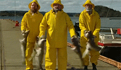先是三个大叔和鳕鱼一起,伴着音乐尬了一段舞▼