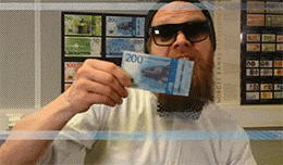 为了体现挪威人民都很喜欢对纸币的喜欢,还要硬是拿着它撩妹...▼