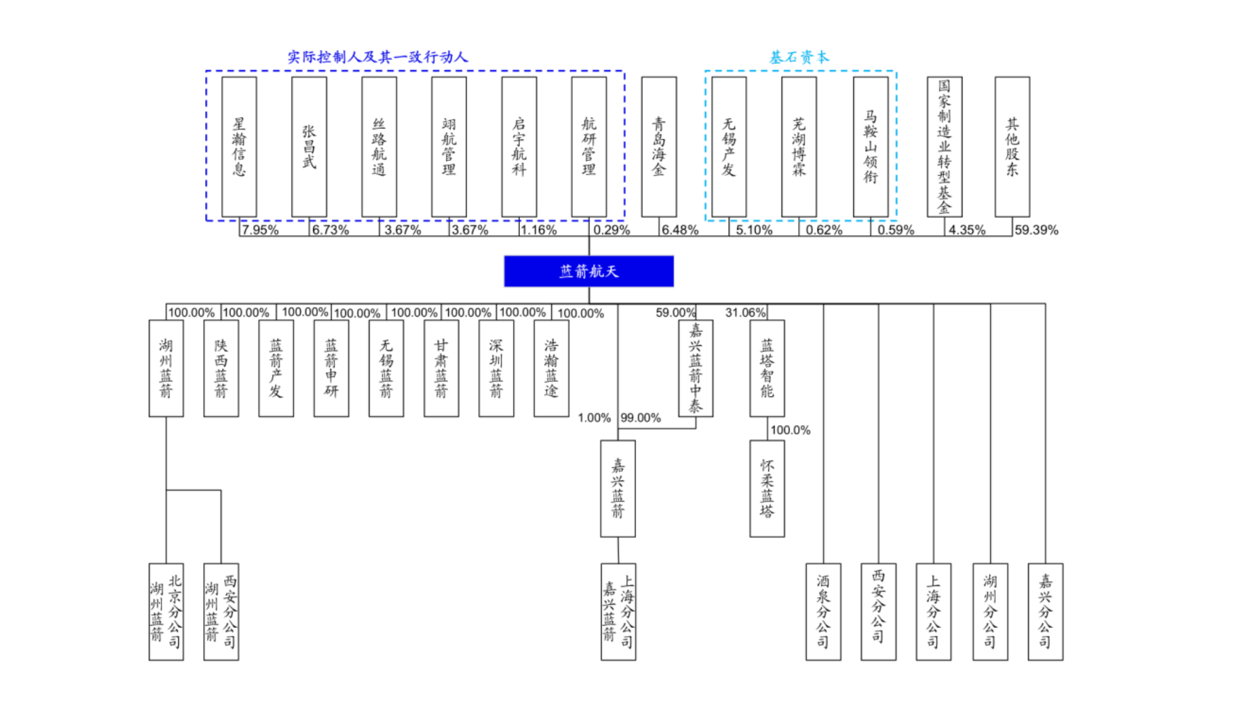 目前,蓝箭航天创始人、董事长张昌武控制的个人持股平台星瀚信息,直接持有蓝箭航天7.9548%股份,是该公司第一大股东;张昌武直接持有蓝箭6.7277%股份,是该公司第二大股东。