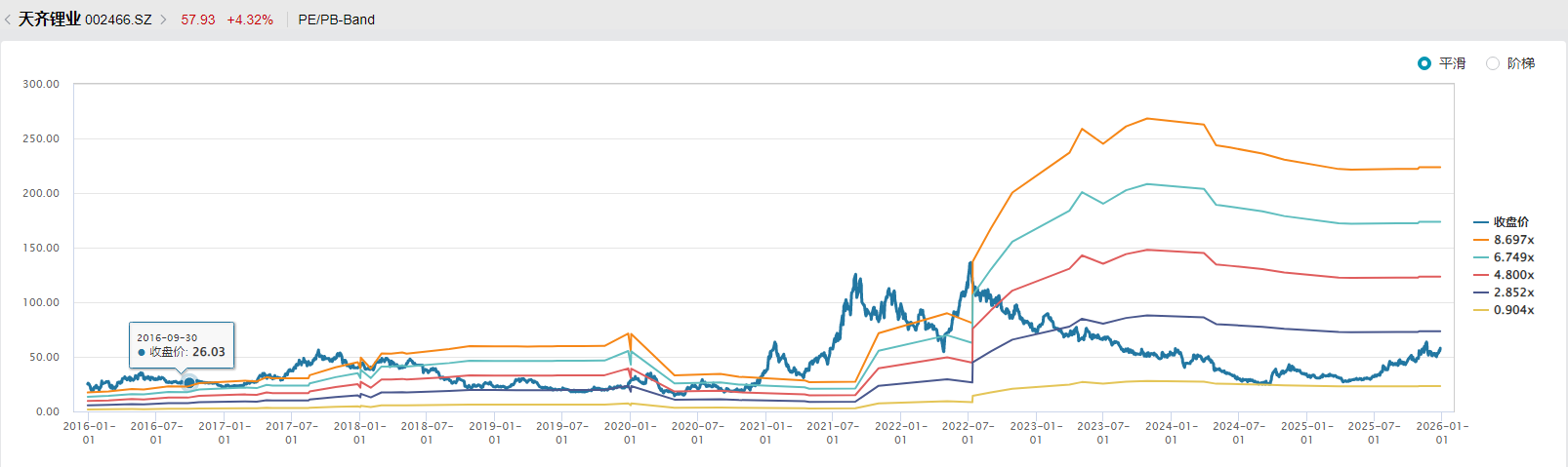 上一轮锂行业调整从2019年开始,2021年迎来爆发,本轮调整已经持续两年多,2026年供需反转的逻辑越来越清晰,行业有望进入新的上升周期。与此同时,目前锂行业相关标的估值处于历史低位,随着盈利预期改善,估值修复空间较大。